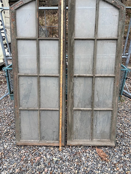Antika välvda stallfönster kärnvirke