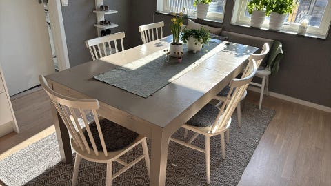 3 000 krMatgrupp rektangulärt matbord vitt med sex stoppade stolar gråVästra Frölunda6 dagarLägg till i favoriter.