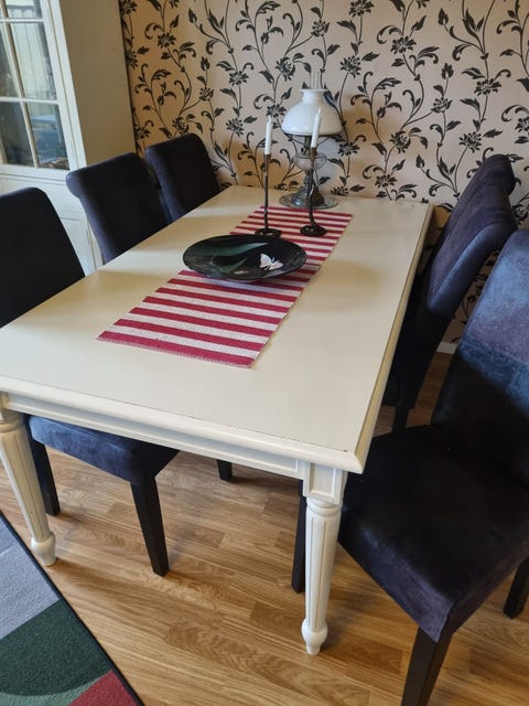 5 000 krKarlshamn Matgrupp oljad ekfanér ,ben vit,4 stolar Vista ek L140 B90 H75Göteborg23 marLägg till i favoriter.