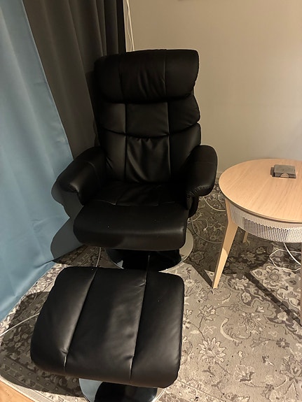 Skinnfåtölj med fotpall