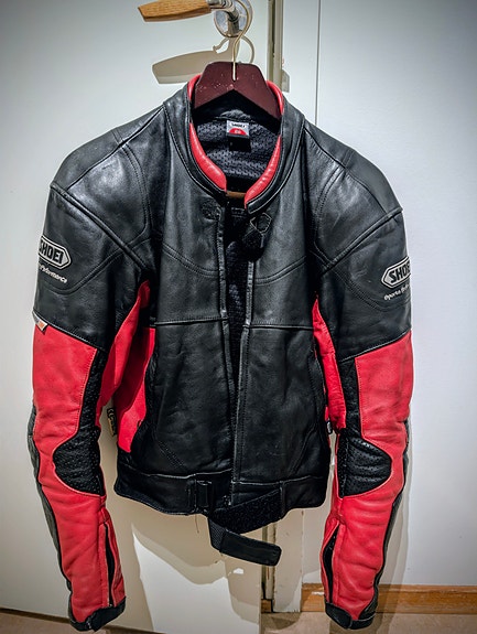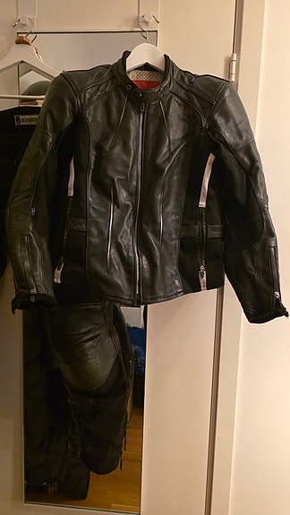 MC jacka, byxa, hjälm, skor