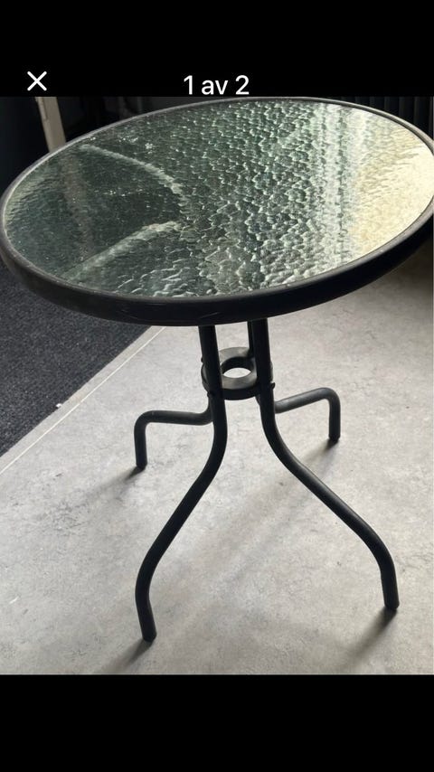 Trädgårdsbord med grå bordsskiva och svart stativ