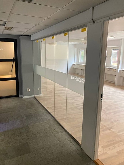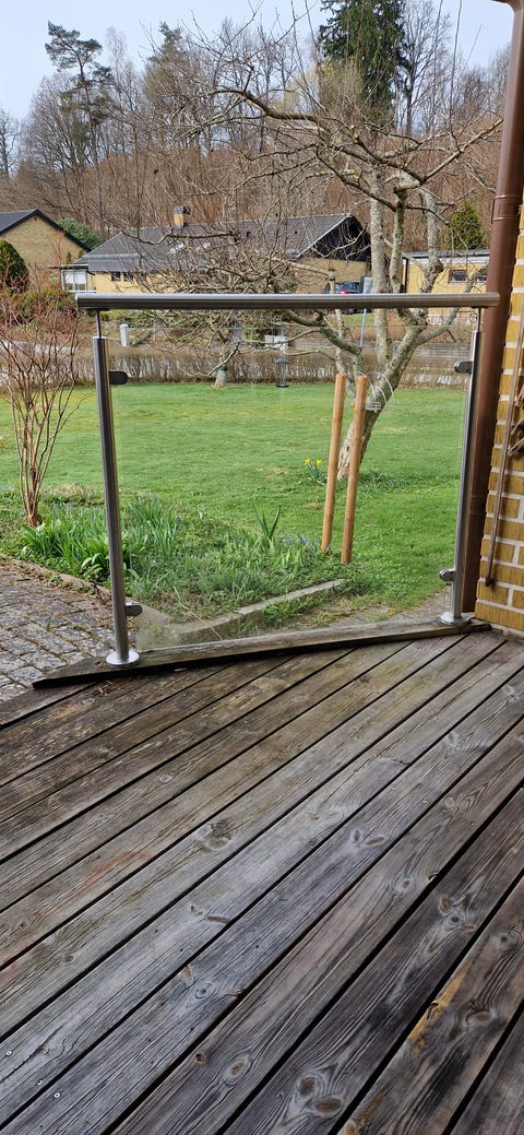 Glasräcke med metallstolpar