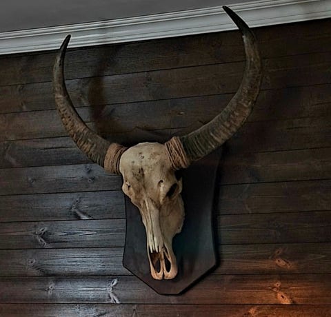 Vattenbuffel skalle på träsköld