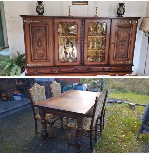 Matsalsmöbel med vitrinskåp