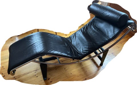 Läderfåtölj med fotpall