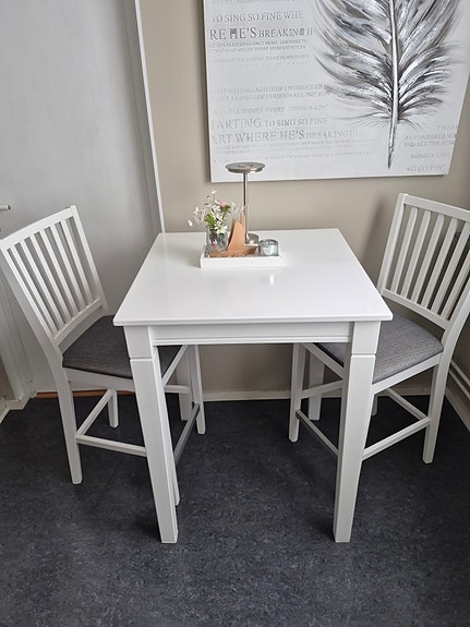 Vit- Barbord med två Stolar