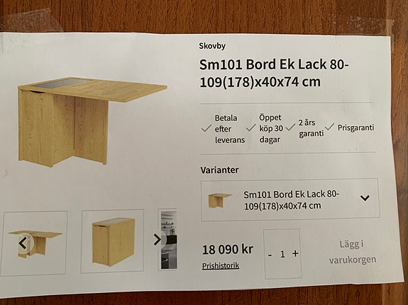 Ekbord med förlängningsskiva