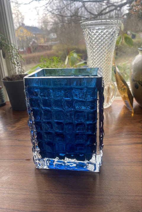 Rektangulär blå glasvas