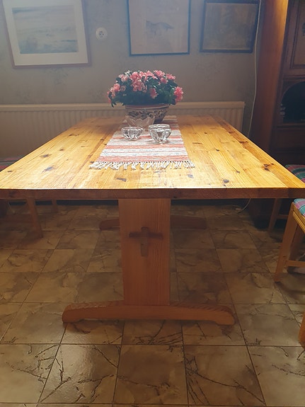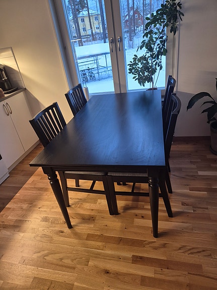 500 krIKEA matgrupp runt bord med fyra stolar trä och lila tyg IKEAVikarbyn25 marLägg till i favoriter.