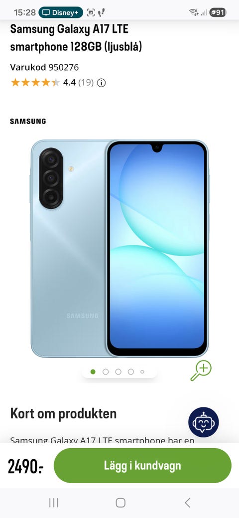 1 900 krSamsung Galaxy A17 LTE smartphone 128GB (ljusblå) 128 GB SamsungBorlänge2 timKöp nuLastbil i rörelseKan skickasLägg till i favoriter.
