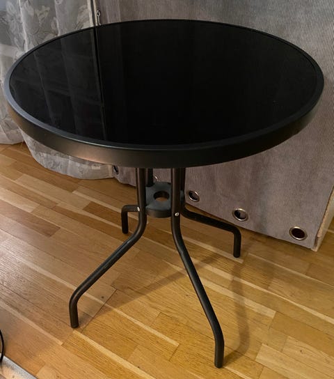 Runt soffbord glas kromställning