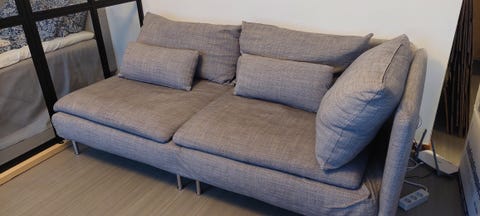 Soffa, beige bäddsoffa Grönlid från IKEA med förvaring