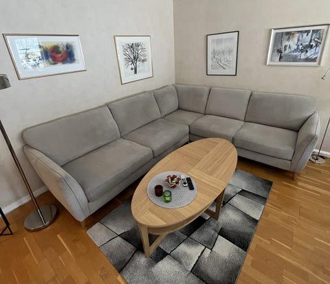 Hörnbäddsoffa med förvaring – Nästan ny! (Umeå)
