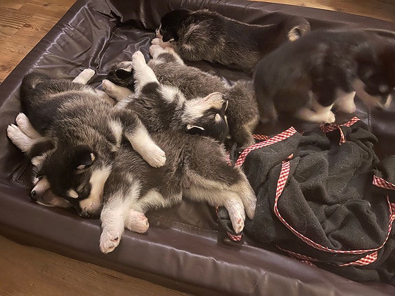 Husky-syskon från arbetande föräldrar 11 mån
