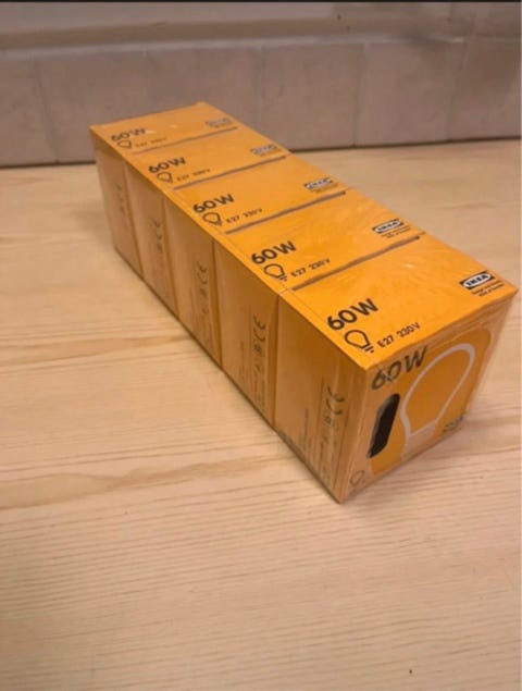 80 krIKEA 60W Glödlampor - Nya i Förpackning (E27)Vallentuna28 janKöp nuLastbil i rörelseKan skickasLägg till i favoriter.