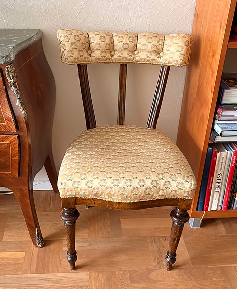400 kr4 stoppade trästolar med mönstrad klädsel samt antik karmstolVendelsö2 dagarLägg till i favoriter.Öppna annons