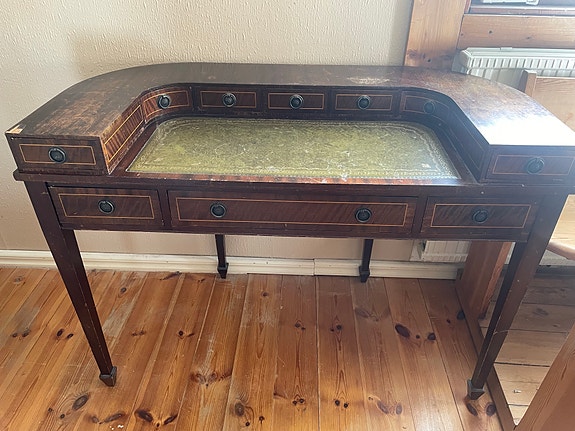 1 000 krAntik Rokoko Skrivbord i mörkt trä med grön skinnskivaJordbro11 timLägg till i favoriter.Öppna annons