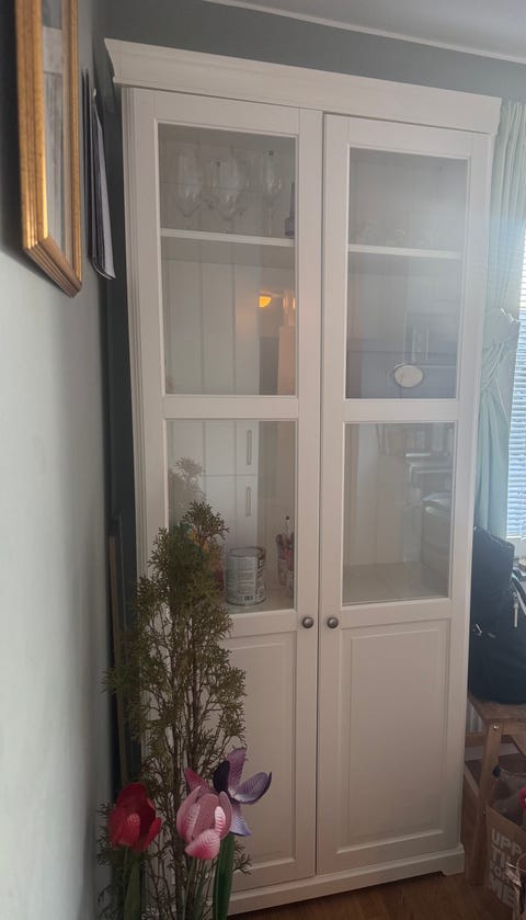 Äldre massiv innerdörr med glasruta