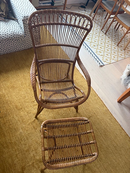 9 000 krLounge Ottoman design fåtölj med sittpall beige läder valnöt trä detaljerStockholm14 marLägg till i favoriter.Öppna annons