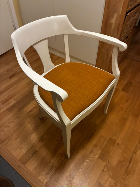 Vit karmstol i trä