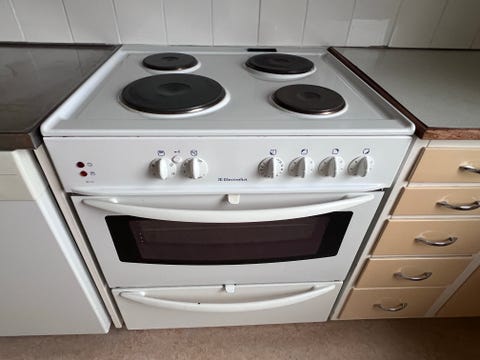 Begangnat kök med vitvaror