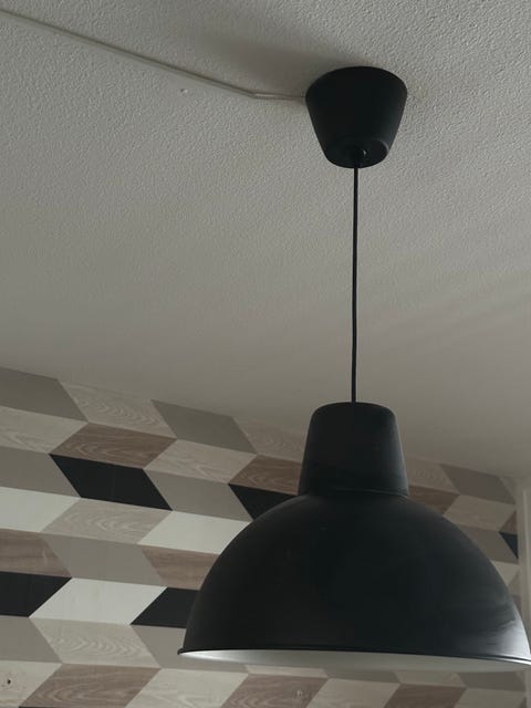 Taklampa i vitt tyg