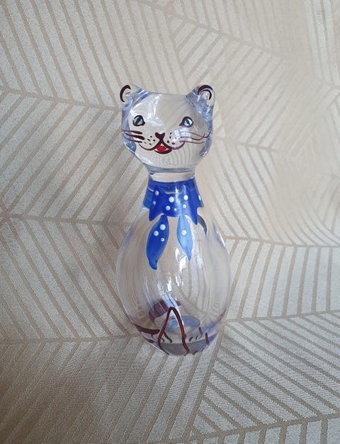 450 krVintage 15 cm hög konstglaskatt Johansfors Sverige handmålad.Nacka4 dagarKöp nuLastbil i rörelseKan skickasLägg till i favoriter.