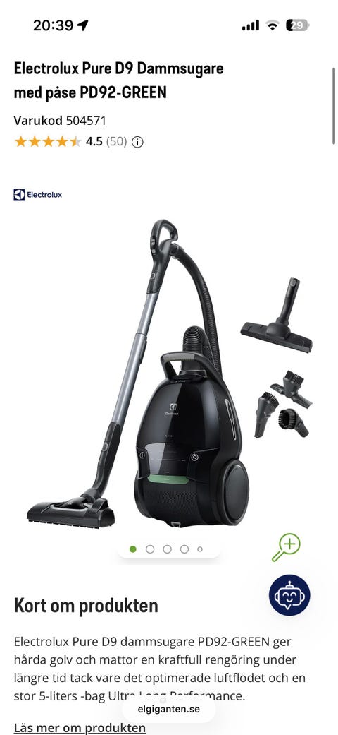 1 790 krElectrolux Pure D9 PD92-GREEN dammsugare svart ElectroluxSundbyberg10 febKöp nuLastbil i rörelseKan skickasLägg till i favoriter.