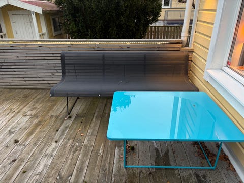 1 000 krFermob Bord och soffa (Ellipse, 3-sits) i metallblått respektive svartUppsala1 dagLägg till i favoriter.