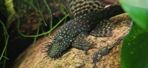 Rovfisk (afrikansk bladfisk?) söker nytt vatten.