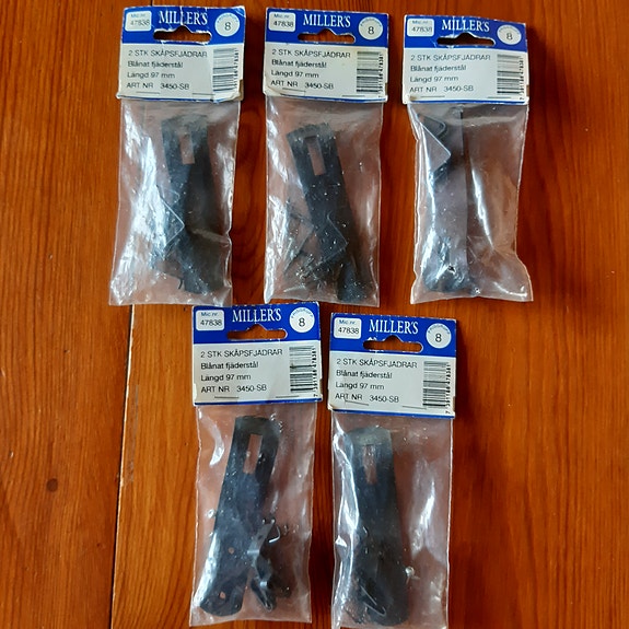 60 krMillers Skåpsfjädrar, Blånat fjäderstål, 97 mm, 5 påsarNyköping4 dagarKöp nuLastbil i rörelseKan skickasLägg till i favoriter.