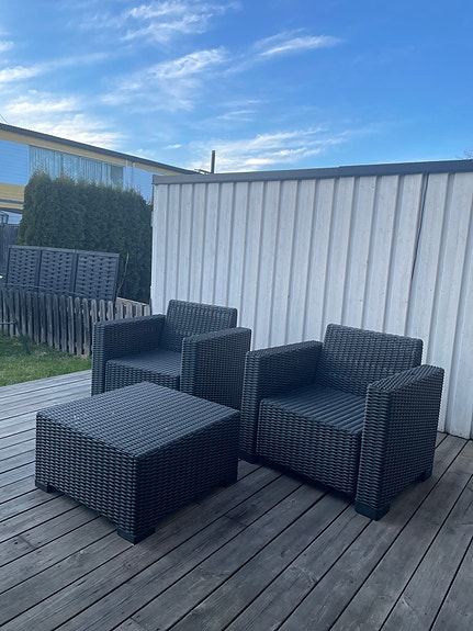 750 krTrädgårdsgrupp/ utemöbler fåtöljer och bord svart rottingEskilstuna5 dagarLägg till i favoriter.