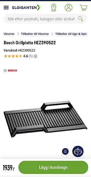 1 500 krBosch HEZ390522 grillplatta gjutjärn svartEskilstuna6 aprKöp nuLastbil i rörelseKan skickasLägg till i favoriter.