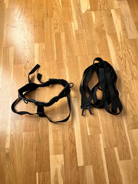 Svart sele med remmar
