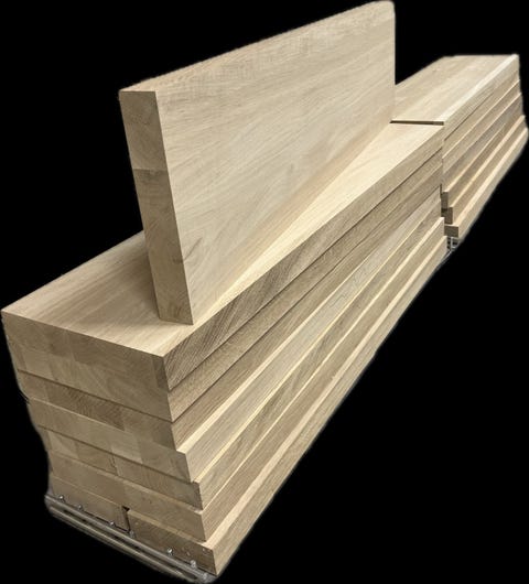 Massiva plansteg i stavlimmad ek