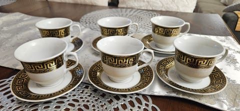 150 krElegant kaffeservis i Versace-stil, oanvänd, 6 koppar (250ml) + 6 fatRonneby8 febLägg till i favoriter.