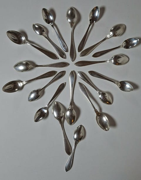 270 kr18st skedar teskedar kaffeskedar bestick sked i nysilver NS alpaca Svensk spetsSkånes Fagerhult28 janKöp nuLastbil i rörelseKan skickasLägg till i favoriter.