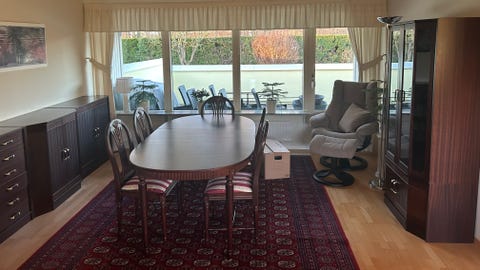 4 500 krMatsalsmöbelset i mörkt trä med åtta stolar och vitrinskåpLöddeköpinge39 minLägg till i favoriter.