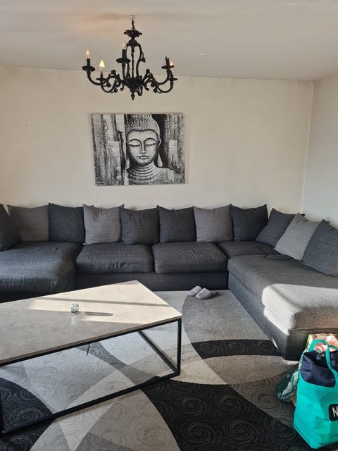 Skinnsoffa /m fotpall