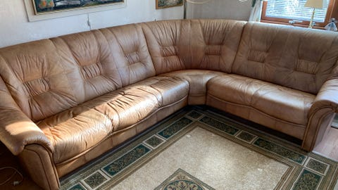 Hörnsoffa läder brun