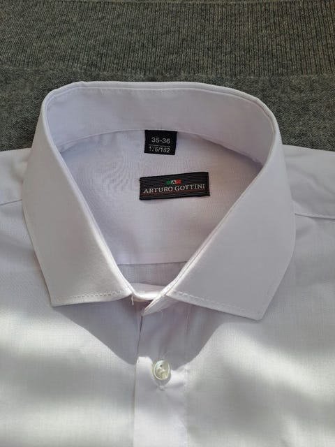 300 krVit ny bomullsskjorta för ung man. Hals 35/36 cm, höjd 176-182 cm. Slim fit.Malmö24 marKöp nuLastbil i rörelseKan skickasLägg till i favoriter.