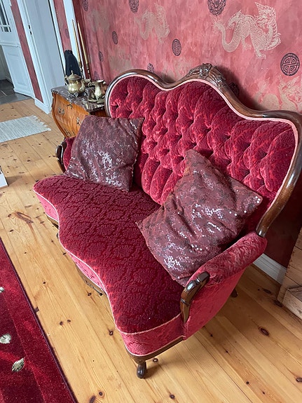 5 000 krElegant röd vintage soffa & 2 fåtöljer – mycket fint skickTrelleborg9 aprLägg till i favoriter.
