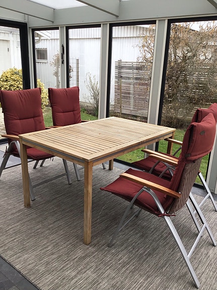 1 500 krMatgrupp bord och stolar för uteplats trä och konstrotting .6st positionstolarSmygehamn3 dagarLägg till i favoriter.
