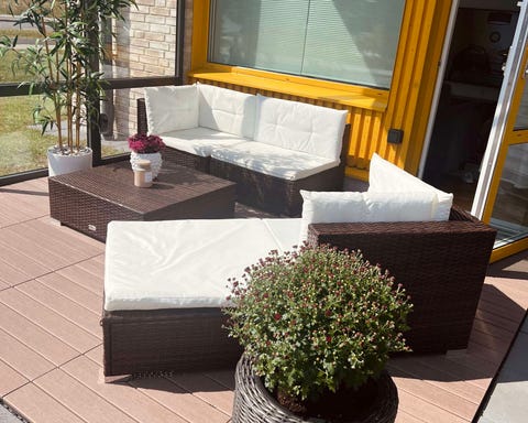Trädgårdsmöbel i trä med dynor och kuddar
