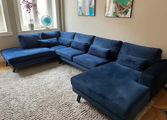 Copenhagen U-soffa - Blå sammet