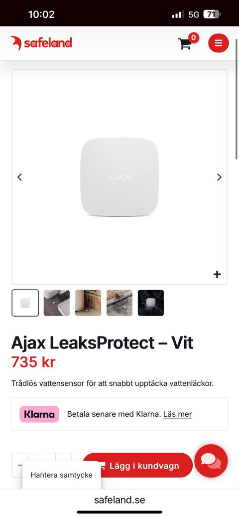 500 krAjax LeaksProtect Trådlös Vattenläckagedetektor VitHolm21 decKöp nuLastbil i rörelseKan skickasLägg till i favoriter.