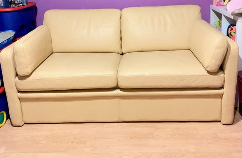 Bäddsoffa i äkta skinn.