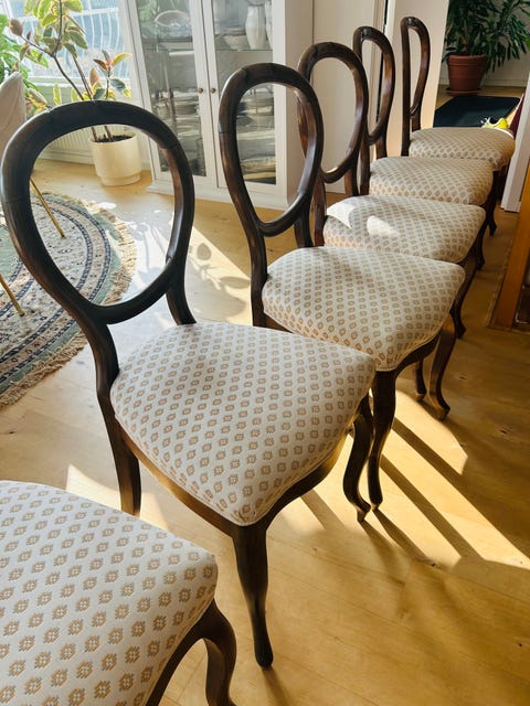 600 kr6st Jättefina matstolar stolar i antik äldre stil rokokostil, 1800-/1900-tal(?)Mölnlycke1 dagLägg till i favoriter.