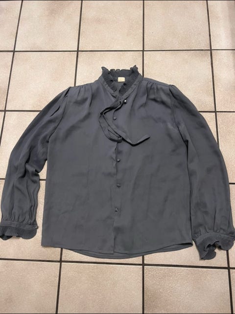 100 krMörkgrå blus med volangkrage storlek S/MStl. SVästra Frölunda6 timKöp nuLastbil i rörelseKan skickasLägg till i favoriter.